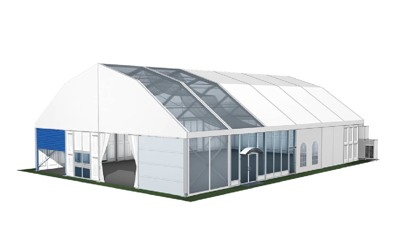 These huge tents are the ideal solution for the big exhibitions and sports events as well as warehouses that require high altitudes and large areas. It also has several options for its sides where you can choose between the sides of PVC or glass facade or sandwich panel and it's designed to provide more interior space with a stylish exterior.